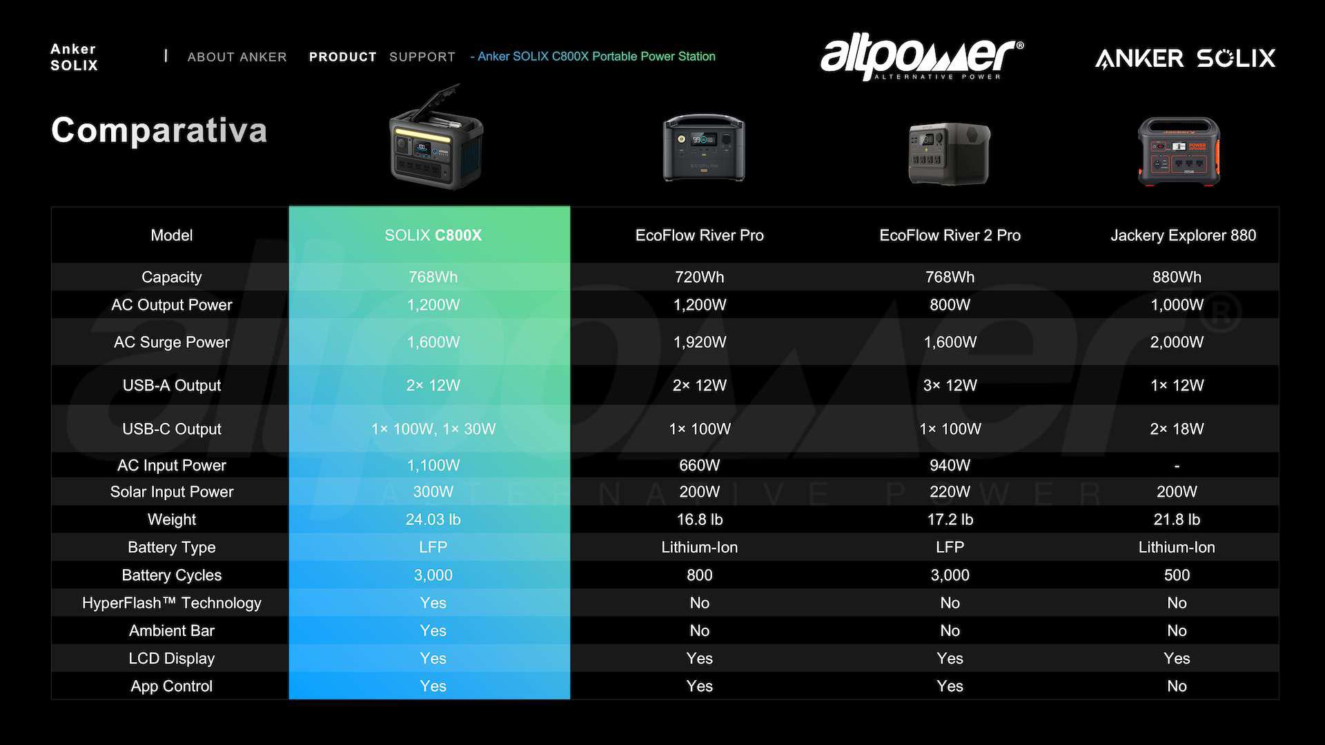 768Wh y Potencia Nominal de 1200W de Alto Rendimiento, con recarga en solo 58 minutos.